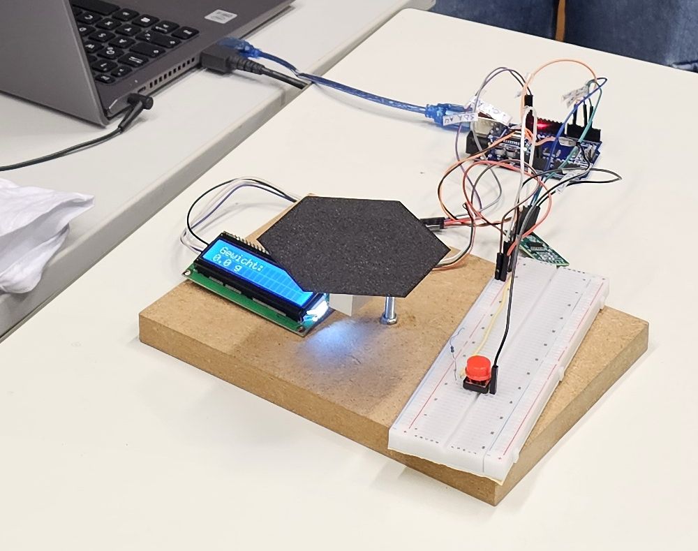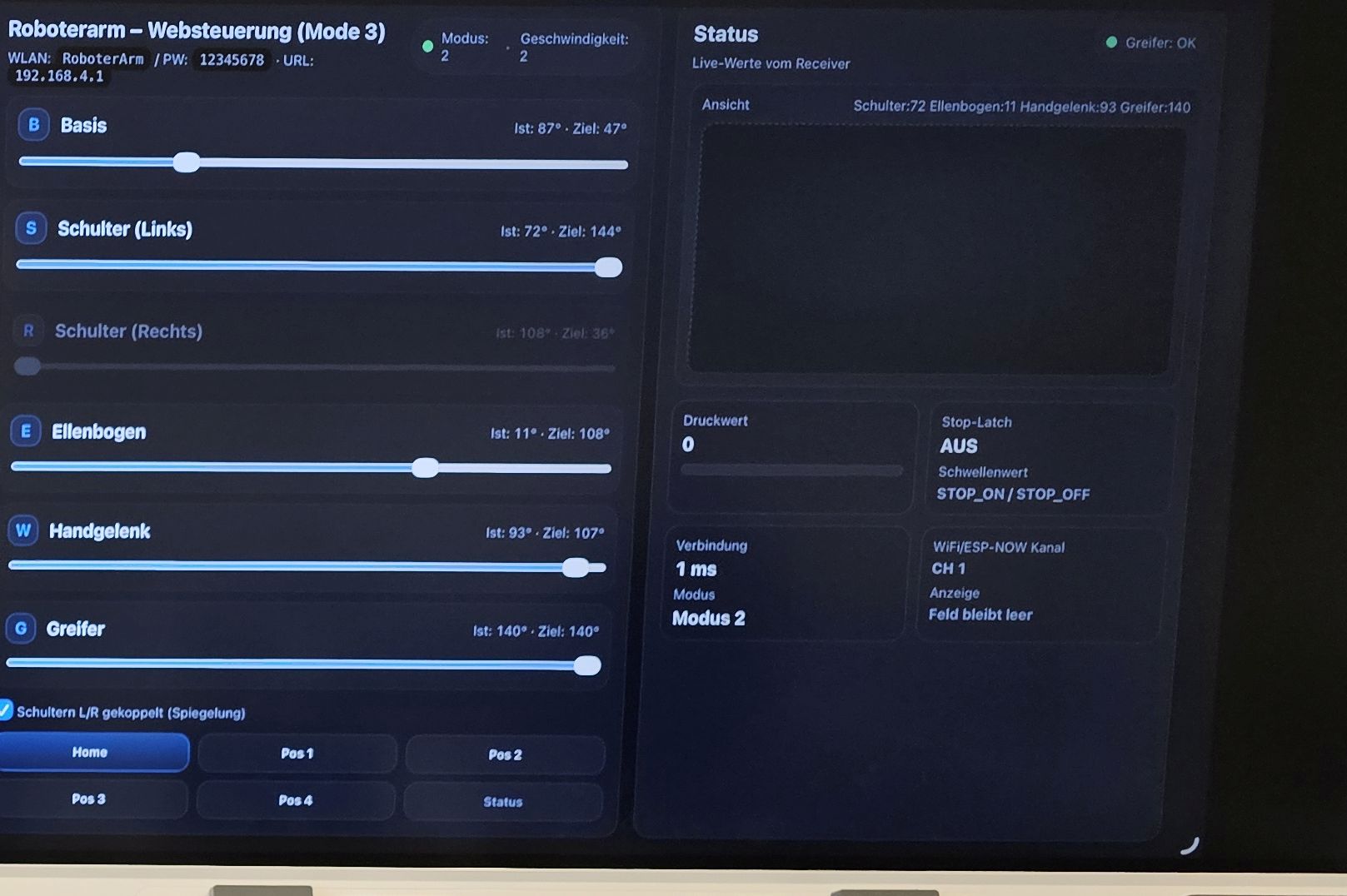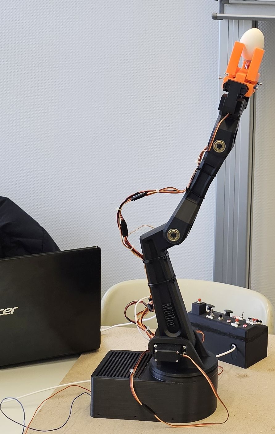 - Roboterarm mit selbst-3D-gedrucktem Aufbau und druckempfindlichem Greifer