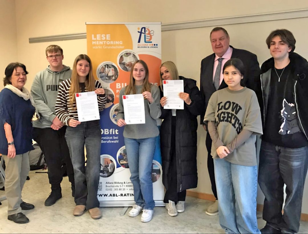 Viele Grundschulkinder benötigen Hilfe bei der Bewältigung ihres Schulalltags. Darum kümmern sich in Ratingen auch Bildungspaten, koordiniert von der Allianz für Bildung und Lernen. Seit 15 Jahren sind auch Schülerinnen und Schüler der Abteilung Wirtschaft und Verwaltung (Höhere Handelsschule) des Adam-Josef-Cüppers-Berufskollegs dabei. Im vergangenen Jahr waren es Anja, Lara und Joanah. Für ein Jahr haben sie ehrenamtliche Bildungspatenschaften für Grundschulkinder übernommen. Das ist ein großartiger Einsatz, der beiden Seiten viel bringt. Die Jugendlichen strukturieren ihre Zeit, trainieren ihre Kompetenzen und schulen ihre Selbstreflexion. Aus dem Bereich Wirtschaft kommend, erfahren sie so, dass eine Tätigkeit, in der es überhaupt nicht darum geht Geld zu verdienen, sehr bereichernd ist und Freiheit schenkt. Die Grundschulkinder bauen Defizite ab und festigen das Fundament, auf dem sich ihr weiteres Lernen aufbaut. Nach der Schule unterstützen Bildungspaten individuell. Teils geht es um den aktuellen Schulstoff und die Vorbereitung auf Klassenarbeiten, oft müssen dafür jedoch erst die Grundlagen in Sprache und Mathematik gefestigt werden. Beim Übergang in die weiterführende Schule sind die Kinder darauf angewiesen gute Lernstrategien zu entwickeln, Strukturen zu üben, um den Überblick nicht zu verlieren. Außerdem stärkt das Beziehungsangebot der Bildungspaten das Selbstvertrauen und ermutigt die Kinder. Auf Grund ihres jungen Alters sind die Bildungspaten der Höheren Handelsschule für die Grundschulkinder auch so etwas wie große Schwestern und Brüder, die Vorbild sind und mit denen man auch Spaß haben kann.